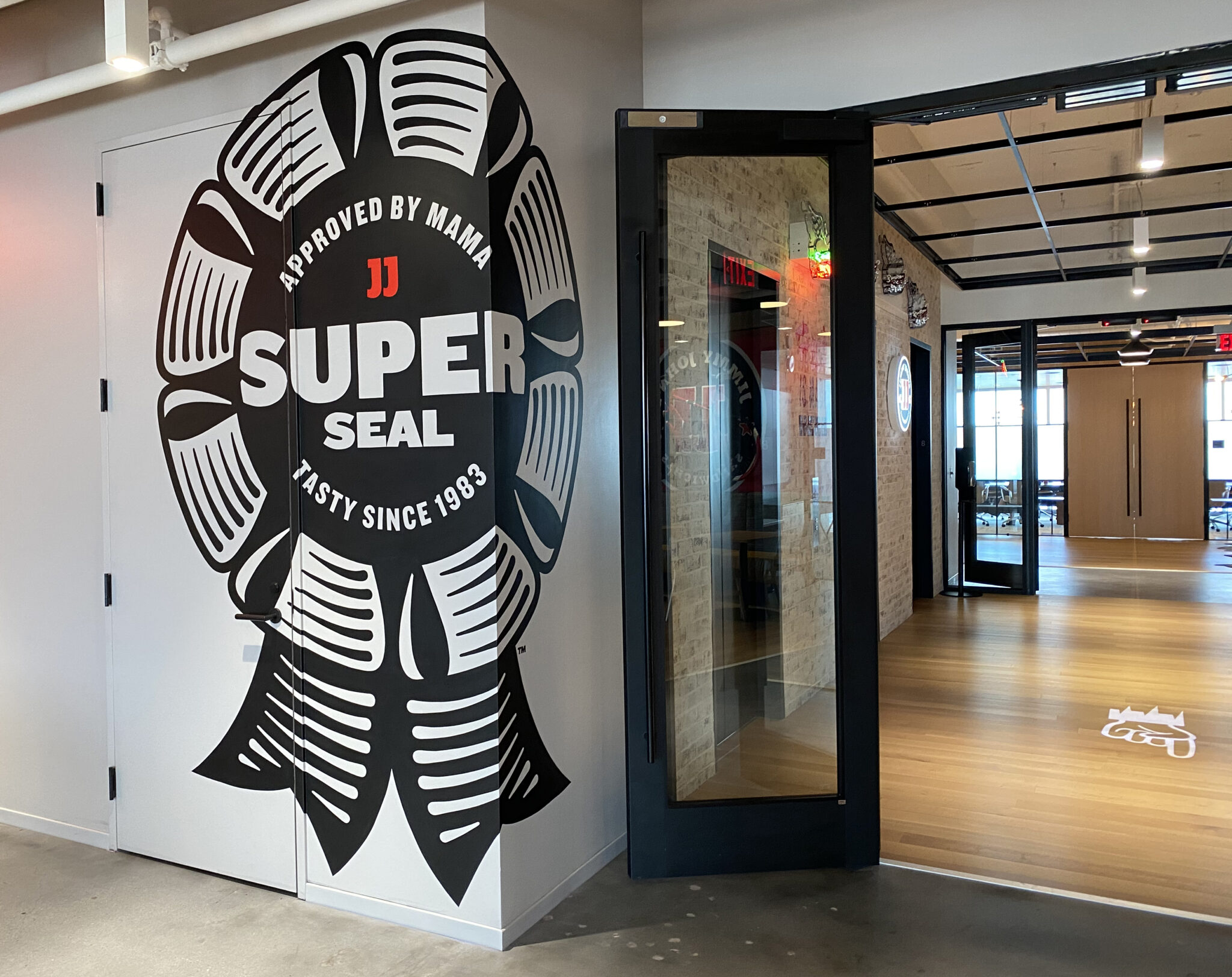 Our concept for the Jimmy Johns branding at Inspire Brands HQ centered around their in-store experience, elements like neon, signage and brand symbols. The “flying” sandwich animated neon activates the space, and the inventive hidden bicycle jumps out at the viewer when seen from an angle.